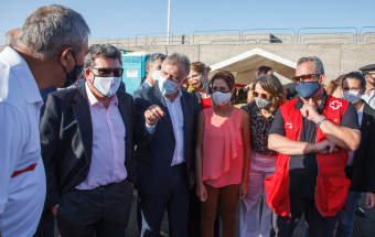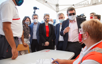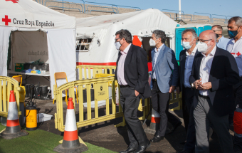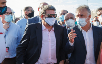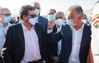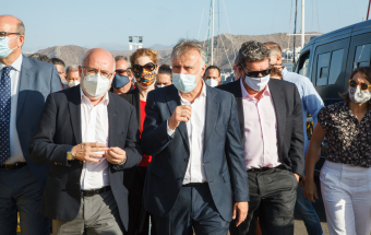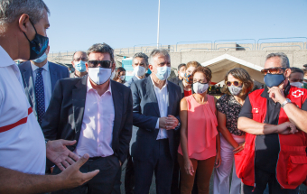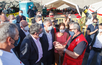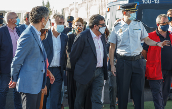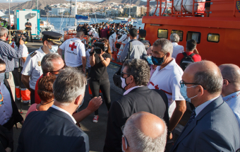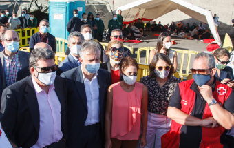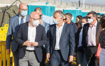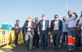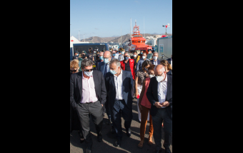 El ministro de Inclusión, Seguridad Social y Migraciones, José Luis Escrivá, junto al presidente de Canarias, Ángel Víctor Torres, visitó esta mañana el muelle de Arguineguín, en el municipio grancanario de Mogán.