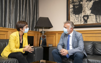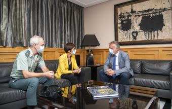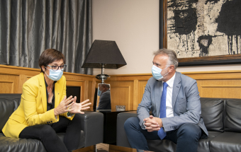 El presidente de Canarias, Ángel Víctor Torres, ha recibido este martes en la sede de Presidencia en Las Palmas de Gran Canaria a la directora general de la Guardia Civil, María Gámez, con la que ha abordado la actual situación de la migración en Canarias y a la que ha trasladado los contactos que ha mantenido el último fin de semana con el presidente Pedro Sánchez, con la vicepresidenta Carmen Calvo, con la ministra de Defensa, Margarita Robles, con los máximos responsables del Ministerio de Asuntos Exteriores, y con el ministro del Interior, Fernando Grande-Marlaska, con el que ha hablado hoy mismo.