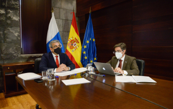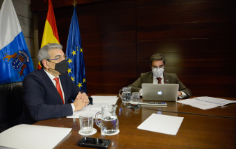 El vicepresidente del Gobierno de Canarias y consejero de Hacienda, Presupuestos y Asuntos Europeos, Román Rodríguez, participó esta tarde de forma telemática, en la Comisión para Asuntos Relacionados con la Unión Europea.