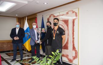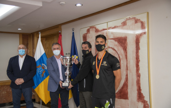 El presidente de Canarias, Ángel Víctor Torres, junto al director general de Deportes del Gobierno, Manuel López, han recibido este lunes 1 de febrero en la sede de Presidencia en Las Palmas de Gran Canaria a una representación del Club Molina Sport Gran Canaria, que este domingo se proclamó campeón de la decimoséptima edición de la Copa de SM El Rey de hockey línea que se celebró este fin de semana en Las Palmas de Gran Canaria. El equipo, que en la reunión estuvo representado por el presidente del club, Alejandro Molina, y el jugador, a la vez que entrenador, Andreu Tomás, revalidó así el título que consiguió la temporada pasada, el segundo de toda su historia.