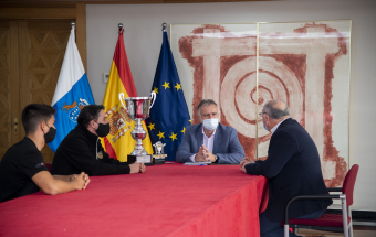 Ángel Víctor Torres felicitó al club no solo por haber dejado el trofeo en Canarias sino por la magnífica temporada que está realizando, y se interesó por los detalles del partido y de la organización del evento en las Islas, en las excepcionales circunstancias generadas por la COVID-19.