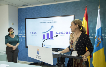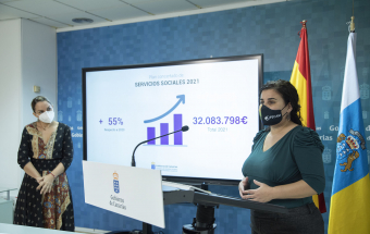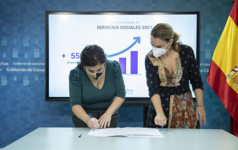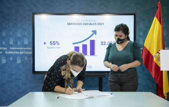 La Consejería de Derechos Sociales, Igualdad, Diversidad y Juventud de Gobierno de Canarias y la Federación Canaria de Municipios (FECAM) han firmado hoy en protocolo para el reparto de fondos sociales en el marco del Plan Concertado de Prestaciones Básicas de Servicios Sociales, a través del cual se financian los servicios sociales comunitarios y programas de atención social para las familias más vulnerables del municipio, con un montante global que asciende a 32.083.798 euros, 11.340.861,14 euros más que en 2020, un incremento del 55 por ciento.