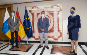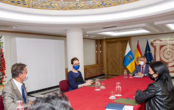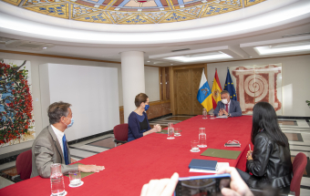 El presidente de Canarias, Ángel Víctor Torres, ha mantenido en la mañana de este miércoles una reunión con la ponente en el Parlamento Europeo del Reglamento de Dublín y del Reglamento de Procedimiento de Asilo en el nuevo Marco Europeo sobre Migración y Asilo, Fabienne Keller, y con el eurodiputado y presidente de Comisión de Libertades Civiles, Justicia y Asuntos de Interior del Parlamento Europeo, Juan Fernando López, en la que han analizado la situación de Canarias ante la migración.