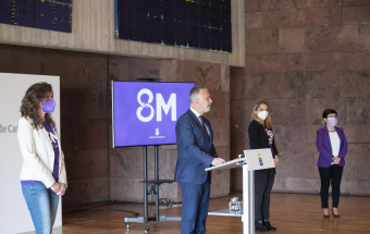 El presidente del Gobierno de Canarias, Ángel Víctor Torres, realizó hoy la lectura del manifiesto del 8 de Marzo, Día Internacional de las Mujeres. En el acto, que se realizó en la sede de Presidencia de Santa Cruz de Tenerife, también compareció la consejera de Derechos Sociales, Igualdad, Diversidad y Juventud, Noemí Santana.