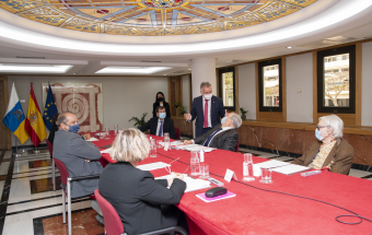 Premios Canarias.- Ángel Víctor Torres saluda a los miembros de los tres jurados (recursos). 12:42 17-03-2021 Sociedad