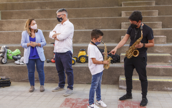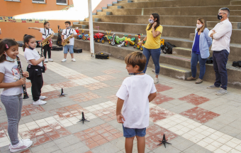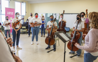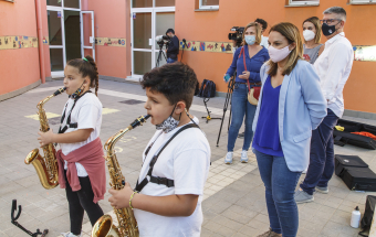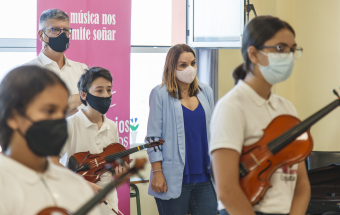La consejera de Asuntos Sociales del Gobierno de Canarias, Noemí Santana, visitó esta tarde el proyecto de Barrios Orquestados en el que participan medio centenar de menores de Telde.