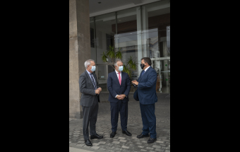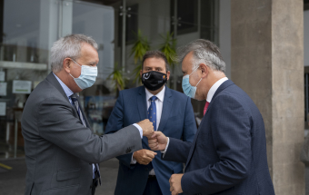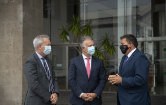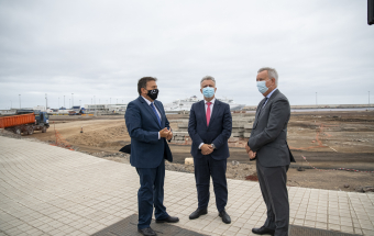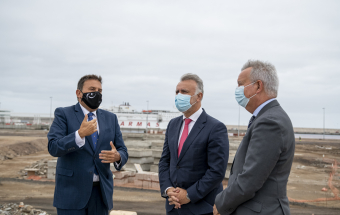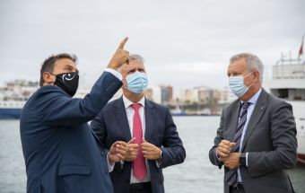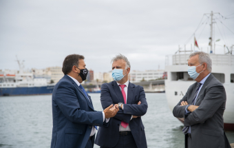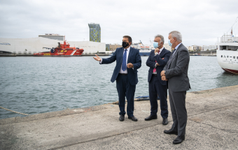 El presidente de Canarias, Ángel Víctor Torres, realizó esta mañana una visita al Puerto de Las Palmas junto al presidente de la Autoridad Portuaria, Luis Ibarra, y el consejero de Obras Públicas, Transportes y Vivienda, Sebastián Franquis.