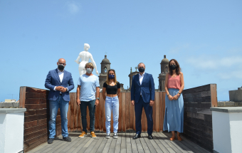 El alcalde de Las Palmas de Gran Canaria, Augusto Hidalgo, y el concejal de Deportes, Aridany Romero, recibieron hoy a la surfista capitalina Lucía Machado, quien se ha proclamado recientemente campeona de España absoluta de surf celebrado en Valdoviño (Galicia). Tanto Hidalgo como Romero felicitaron a la deportista grancanaria, quien ha experimentado una progresión meteórica desde el pasado 2018, año en el que alcanzó el cuarto puesto en el mundial junior.