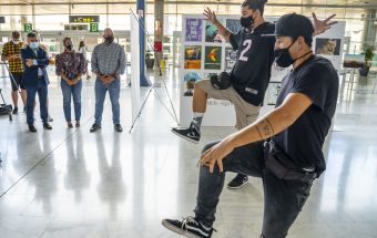 Lloret López estuvo acompañado por la consejera de Educación y Juventud, María Saavedra Hierro, por el director del aeropuerto, Antonio García Aparicio y de diez de las y los creadores de las obras galardonadas que se exponen, entre ellas la ganadora del primer premio de danza que les ofreció una muestra de la actuación ganadora.