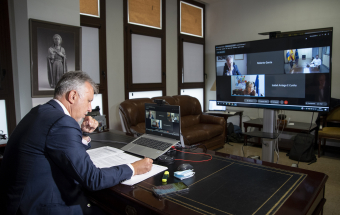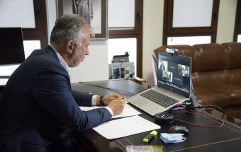 La Palma.- Ángel Víctor Torres mantiene una reunión telemática con Elisa Ferreira (5 fotos).