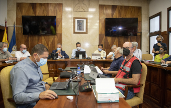 La Palma.- Celebración de una nueva reunión del Comité Director del PEVOLCA y posterior rueda de prensa (15 fotos).