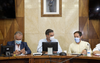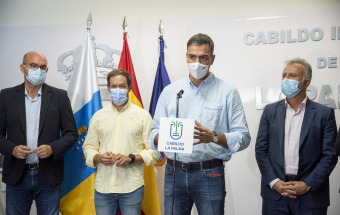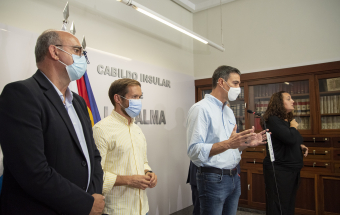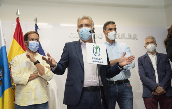El presidente regional participó en una nueva reunión del Comité Director del Plan Especial de Protección Civil y Atención de Emergencias por Riesgo Volcánico (Pevolca) celebrada en el Cabildo palmero junto al presidente de España, Pedro Sánchez, y el titular del Cabildo de La Palma, Mariano Zapata. Ante los medios de comunicación, Torres indicó que lo prioritario sigue siendo adoptar las máximas precauciones ante “un volcán que está activo y que tiene coladas, una de las cuales camina inexorablemente hacia el mar y no se puede hacer absolutamente nada. Cuando alcance el océano -indicó-, será un momento crítico, pues hay que recordar que la única víctima que se produjo con el volcán Teneguía en 1971 fue precisamente en ese momento por inhalación de gases”.