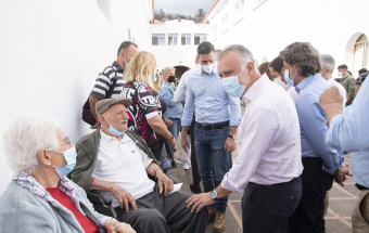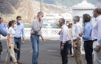 La Palma.- Ángel Víctor Torres y Pedro Sánchez acompañan a los Reyes en la visita a los palmeros desplazados que han sido reubicados en El Fuerte (recursos). 14:32 23-09-2021 Canarias