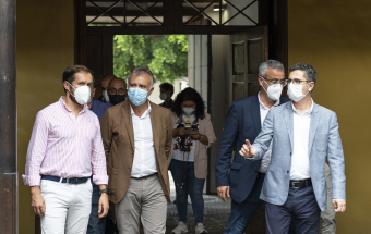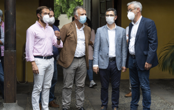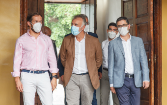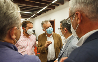La Palma.- Ángel Víctor Torres y Félix Bolaños visitan la oficina para la atención a los afectados por el volcán ubicada en la Casa Massieu (recursos). 17:59 01-10-2021 Canarias