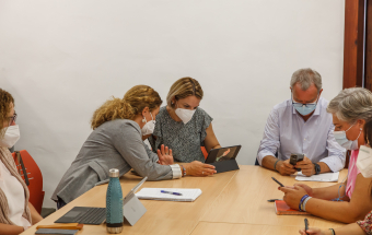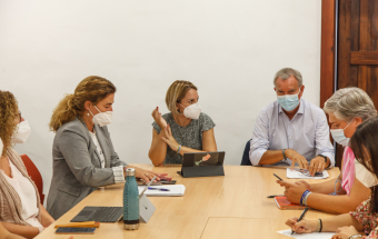En el encuentro, Santana estuvo acompañada por la viceconsejera de Derechos Sociales Gemma Martínez y Sebastián Franquis, consejero de Obras Públicas, Transportes y Vivienda. El marco de la reunión fue la Casa Massieu, donde se ha instalado la Oficina de Atención Ciudadana.