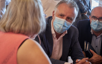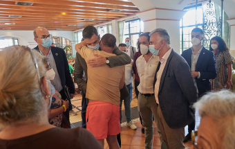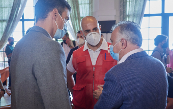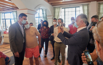 La Palma.- Ángel Víctor Torres y Pedro Sánchez visitaron a las personas afectadas por el volcán y realojadas en el hotel Princess (recursos). 15:55 03-10-2021 Canarias