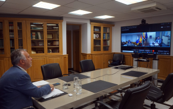 El presidente de Canarias, Ángel Víctor Torres, mantuvo este martes una reunión telemática desde la sede de Presidencia en Las Palmas de Gran Canaria con el viceconsejero de la Presidencia, Antonio Olivera, para coordinar las labores de la Oficina de Atención a la Ciudanía afectada por el volcán de La Palma ubicada en Los Llanos de Aridane.