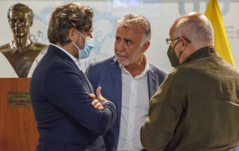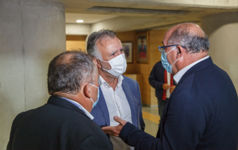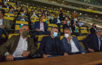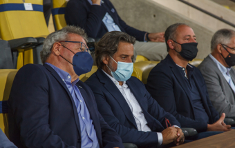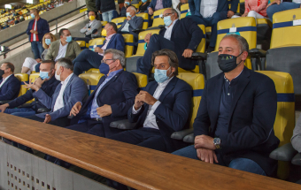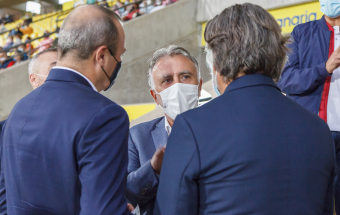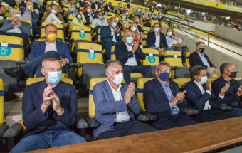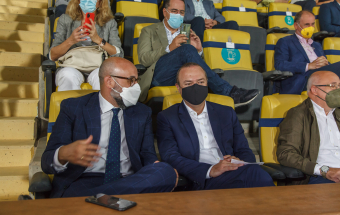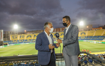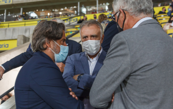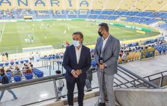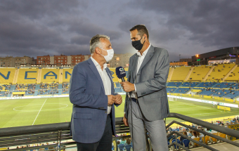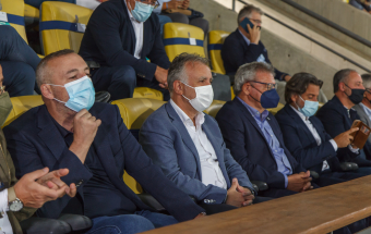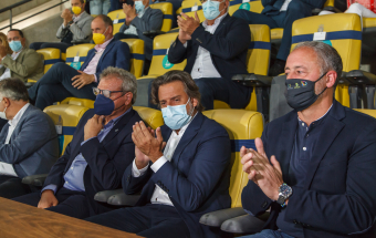 UD Las Palmas y Egatesa Tenerife disputan un amistoso a beneficio de los palmeros afectados por el volcán. Asisten, entre otras autoridades, el presidente regional, Ángel Víctor Torres, y el del Parlamento de Canarias, Gustavo Matos, el presidente del Cabildo Gran Canaria, Antonio Morales y el alcalde la capital grancanaria, Augusto Hidalgo.