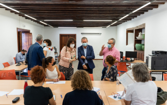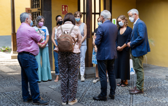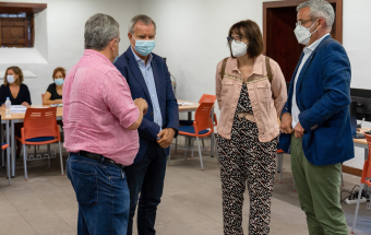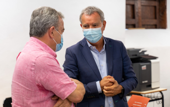 La Palma.- Sebastián Franquis visita a los primeros integrantes del equipo especial que atiende a las familias afectadas por la erupción (recursos). 14:01 06-10-2021 Canarias