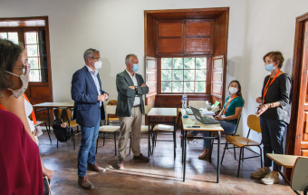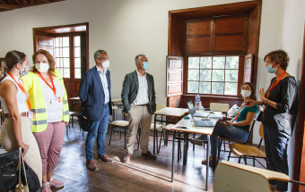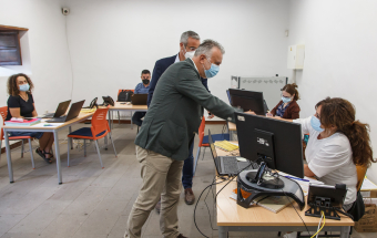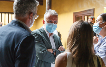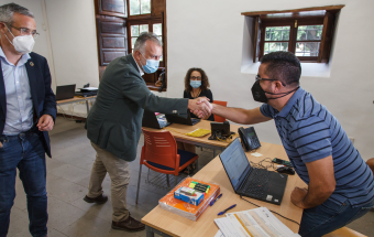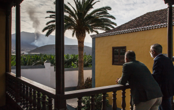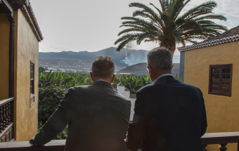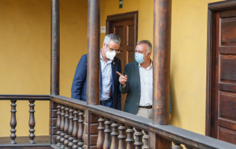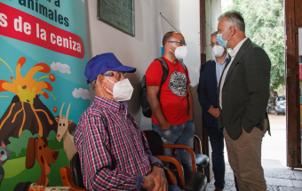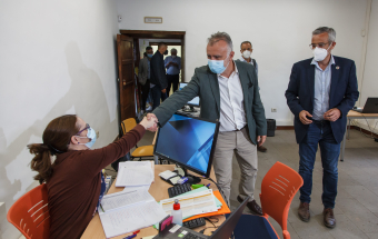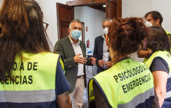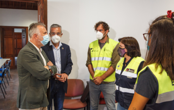 El presidente de Canarias, Ángel Víctor Torres, visitó esta mañana la Oficina de atención a la ciudadanía afectada por el volcán de La Palma ubicada en la Casa Massieu, en Los Llanos de Aridane.