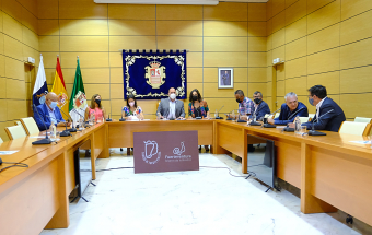 Castilla fue recibida hoy por el presidente del Cabildo majorero, Sergio Lloret, quien estuvo acompañado por las consejeras de Hacienda, Lola García y de Turismo, Jessica de León y por el consejero de Comercio, Domingo Pérez.
