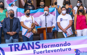 El Cabildo de Fuerteventura y ALTIHAY Fuerteventura procedieron hoy al izado de la bandera Trans, con motivo de la celebración del Orgullo TRANS, que se conmemora todos los meses de octubre. Durante el encuentro, los coordinadores del Grupo TRANS de ALTIHAY Fuerteventura leyeron el manifiesto de este año.