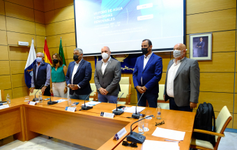 La presentación de este encuentro internacional tuvo lugar esta mañana en el Salón de Plenos del Cabildo insular con la asistencia de su presidente, Sergio Lloret López, y los consejeros insulares de Economía y Deportes, Lola García y Claudio Gutiérrez, respectivamente; el alcalde de Puerto del Rosario, Juan Jiménez; el viceconsejero de Economía e Internacionalización del Gobierno de Canarias, Blas Acosta; el presidente de la Cámara de Comercio de Fuerteventura, Antonio Rodríguez Marichal, y el coordinador de Africagua, Juan Jesús Rodríguez Marichal.