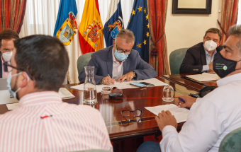 El presidente de Canarias, Ángel Víctor Torres, participó esta mañana, en el Cabildo palmero, en la tercera reunión de la Comisión Mixta para la recuperación de la isla de La Palma, junto al presidente del Gobierno de España, Pedro Sánchez (que intervino vía telemática), el ministro de Agricultura, Luis Planas, presente en la Isla Bonita desde este martes (26 de octubre), y el titular del Cabildo insular, Mariano Hernández Zapata, entre otras autoridades.