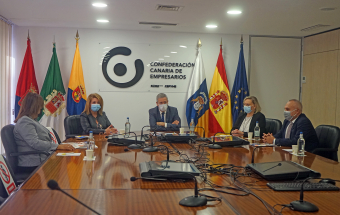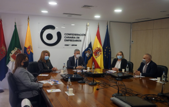 La Asociación Española de Mujeres Empresarias (ASEME) de Canarias presentó hoy el XXXI Congreso Iberoamericano de Mujeres Empresarias (CIME 2021) que se celebrará los días 25 y 26 de noviembre. La presentación contó con la presidenta y la vicepresidenta de ASEME Canarias, Lidia Monzón y Mari Paz Llorente, respectivamente, que ofrecieron los pormenores del Congreso acompañadas por el presidente de la CCE, Agustín Manrique de Lara, y el secretario general de la entidad, José Cristóbal García. También asistió la secretaria de ASEME Canarias, Marisol Montalti, miembro del Jurado de los Premios que se otorgan en el marco del Congreso.