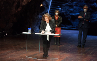 Tras la alocución del presidente de Canarias, se procedió a la firma simbólica del marco estratégico de la Agenda Canaria 2030 por representantes de instituciones públicas, organizaciones sociales, económicas, educativas y culturales de las Islas, de un gran número de personas vinculadas a amplios sectores de la sociedad canaria.