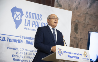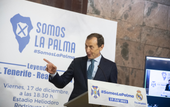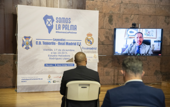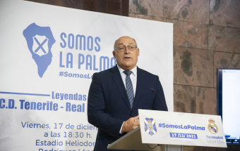 La sede de Presidencia de Santa Cruz de Tenerife acogió esta mañana la presentación del partido solidario de Leyendas que disputarán el CD Tenerife y el Real Madrid, encuentro de carácter solidario tiene como objetivo de recaudar fondos destinados a ayudar a las personas afectadas por la erupción del volcán en La Palma. El acto contó con la presencia de Manuel López, Director General de Deportes del Gobierno de Canarias; Emilio Butragueño, Director de Relaciones Institucionales del Real Madrid; Milagros Luis Brito, vicepresidenta segunda del CD Tenerife, así como de manera telemática con el presidente del Cabildo Insular de La Palma, Mariano Hernández Zapata y ex jugadores como Roberto Carlos, Iker Casillas, Ricardo León o Suso Santana. El encuentro se celebrará el próximo día 17 de diciembre, en el estadio Heliodoro Rodríguez López.