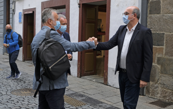 El presidente de Canarias, Ángel Víctor Torres, participó esta mañana, junto al ministro de la Presidencia, Félix Bolaños, en la reunión de la Comisión Mixta para la Reconstrucción, Recuperación y Apoyo a La Palma. Esta se celebró, también con la asistencia de representantes de otras administraciones públicas, como el Cabildo de La Palma y los ayuntamientos de Los Llanos de Aridane, El Paso y Tazacorte, en la Casa de Salazar (ciudad de Santa Cruz de La Palma).