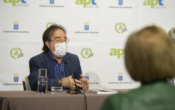 Seguidamente el presidente realizó una descripción de esta undécima edición del anuario editado por la APT, que está patrocinada, desde su nacimiento en 2005, por el Gobierno de Canarias y que en esta ocasión cuenta con la participación de 131 firmas (entre periodistas, especialistas en las materias tratadas y autoridades públicas), que ofrecen una visión retrospectiva dividida en ocho secciones: Desafío sanitario, La vida en la pandemia, Canarias, Economía, Sociedad, Medios de comunicación, Deportes y Gente.