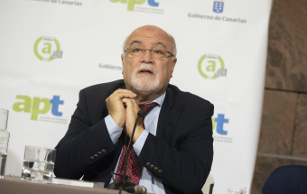 Por su parte, Salvador García inició su intervención agradeciendo a las firmas colaboradoras y patrocinadores su aportación al Anuario de Canarios. El presidente de la APT aprovechó el acto para hacer un repaso de asuntos importantes para el colectivo vividos en los últimos meses, como la entrada en funcionamiento de la nueva sede en la calle San Francisco, así como el inicio de la tramitación de la Ley de creación del Colegio Profesional.