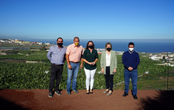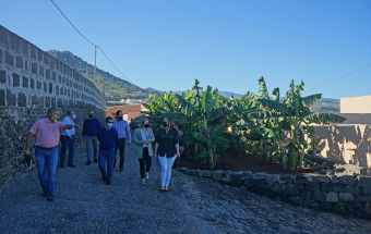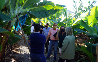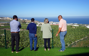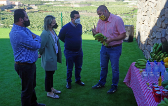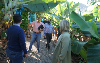 La consejera de Agricultura, Ganadería y Pesca, Alicia Vanoostende, visitó en la mañana de hoy, martes 4 de enero, junto al alcalde de Arucas, Juan Jesús Facundo Suárez, la Hacienda La Rekompensa, una finca de 56.000 metros cuadrados que Rubén García y Katleen Van den Bosch han convertido en un novedoso negocio en el que se mezclan el Turismo y el Sector Primario. Y es que La Rekompensa principalmente se dedica a la producción de plátano, sin olvidar otros cultivos como la papa o el aguacate, pero incluso tiene hueco para la celebración de eventos, como bodas, reuniones o comidas de empresa, con una casa en la que poder quedarse la noche de bodas. Además, la apuesta va más allá porque Rubén y Katleen tienen pensado crear un Museo del Plátano tanto en la vivienda allí existente como en el exterior, donde han plantado 13 tipos distintos de plátanos, como el rojo, el manzano o el topocho.
