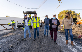 El presidente del Cabildo de Fuerteventura y responsable del Servicio de Carreteras, Sergio Lloret López, junto a la vicepresidenta primera, Lola García, el alcalde de Antigua, Matías Peña, y el concejal de Obras de ese municipio, Juan Cabrera, han recorrido hoy la recién asfaltada travesía de Triquivijate y presenciado la mejora experimentada por la travesía tras las obras que se han venido ejecutando en la principal vía de este núcleo rural desde el pasado mes de septiembre.