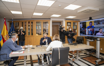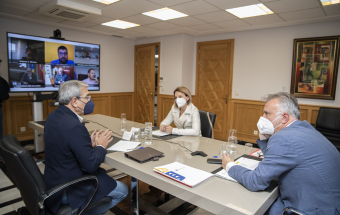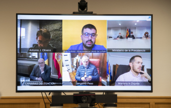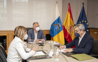 En la reunión de hoy también estuvieron presentes el vicepresidente de Canarias, Román Rodríguez, la consejera de Derechos Sociales, Noemí Santana, el responsable del departamento de Transición Ecológica, Lucha contra el Cambio Climático y Planificación Territorial José Antonio Valbuena, y el viceconsejero de Presidencia, Antonio Olivera.