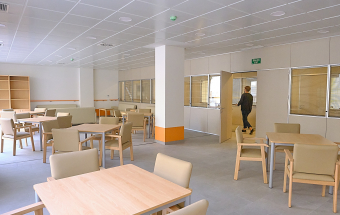 La residencia se compone de una planta baja para zonas comunes, administraciones, centro médico, centro de día, cocina y una unidad habitacional para personas con alto grado de dependencia que acogerá un módulo de psicogeriatría.