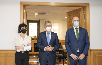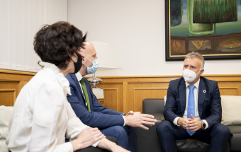 Al encuentro, celebrado en la sede de Presidencia en Las Palmas de Gran Canaria, han asistido el director de Energías Verdes de Navantia, Javier Herrador del Río, y la consejera delegada de Pymar, Almudena López del Pozo.