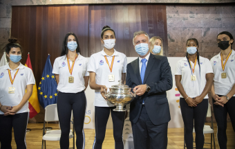 Tras las felicitaciones a las jugadoras, técnicos, dirigentes y representantes de las firmas patrocinadoras de la formación femenina de la Superliga 1, todos los asistentes a la recepción se hicieron una foto de familia en el patio central de Presidencia del Gobierno, con el trofeo acreditativo de tan importante triunfo, el segundo de Copa de la Reina que logra ese club. El primero se produjo en la edición de 2017.