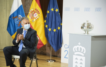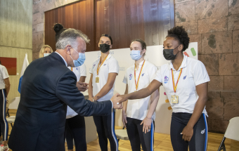 El presidente de Canarias, Ángel Víctor Torres, ha recibido este mediodía del martes 15 de febrero de 2022, en la sede de Presidencia del Gobierno en Santa Cruz de Tenerife, a las jugadoras y el cuerpo técnico del CV Haris de voleibol femenino que el domingo pasado se proclamaron ganadoras de la Copa de la Reina 2022 en la ciudad gallega de Lugo. Este equipo participa en la Superliga 1, la máxima categoría del voleibol femenino nacional.
