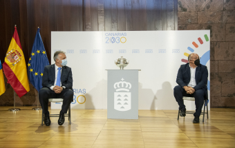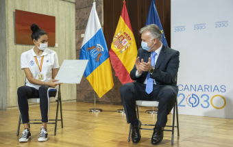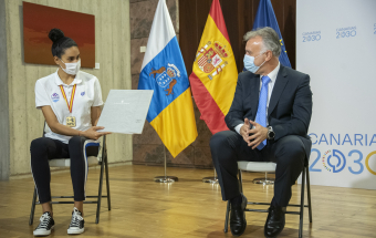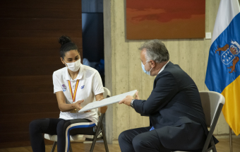 El acto oficial, concebido para trasladar la enhorabuena por ese gran triunfo al equipo del CV Haris, fue presidido por Ángel Víctor Torres, que estuvo acompañado por el director general de Deportes en el Gobierno de Canarias, Manuel López.