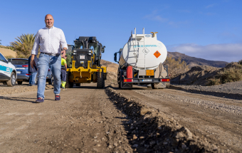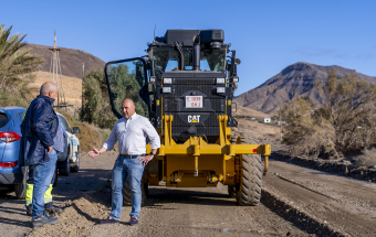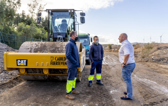 El presidente del Cabildo, Sergio Lloret López, ha visitado en la jornada de hoy los trabajos que se realizan en las inmediaciones del barranco de Bácher desde donde continuarán hacia los alrededores de la localidad de El Cardón. Con esta visita el presidente insular reafirma su apuesta por el modelo comarcal norte-sur de Fuerteventura a fin de “agilizar los trabajos y ejecutarlos por igual en los municipios del norte y en los del sur para que todas las ciudadanas y ciudadanos de la isla tengan las mismas condiciones de accesibilidad independientemente de donde vivan”.