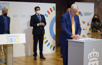 Política.- Gobierno de Canarias, cabildos y la FECAM suscriben el Convenio Interadministrativo de la Red Canaria de Gobierno Abierto (22 fotos). 12:26 18-02-2022 Canarias Santa Cruz de Tenerife ACFI PRESS / Estefanía Briganty