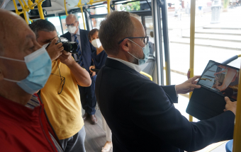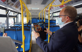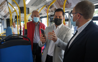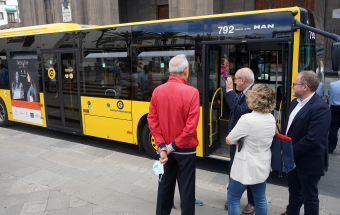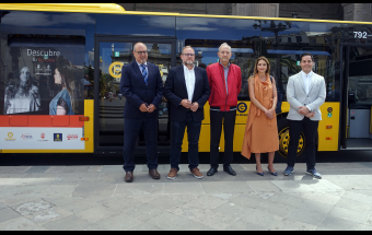 El Museo Canario, Guaguas Municipales y la Fundación MAPFRE Guanarteme han presentado esta mañana en la plaza de Santa Ana una exposición itinerante con contenido digital e interactivo con la que la historia de Gran Canaria recorrerá la capital de la isla a bordo de cuatro vehículos que circularán en líneas de gran afluencia.