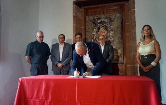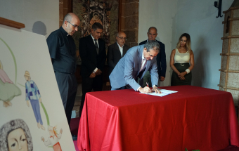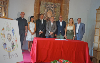 El presidente del Cabildo de Gran Canaria, Antonio Morales, junto a la consejera de Cultura, Guacimara Medina, procedieron hoy a la firma de cesión de derechos para la grabación y retransmisión de los actos con motivo de la festividad de Nuestra Señora del Pino en Teror. También participaron en el acto de firma del convenio con Televisión Canaria y Televisión Española en Canarias, el alcalde de la Villa de Teror, Sergio Nuez, acompañado por la concejala de Comunicación, Deportes y Turismo, Laura Quintana, así como el párroco de Teror, Jorge Martín de la Coba. Por parte de las televisiones públicas, intervinieron el director de Televisión Canaria, Francisco Moreno, y el director de TVE-C, José María García Mediano.