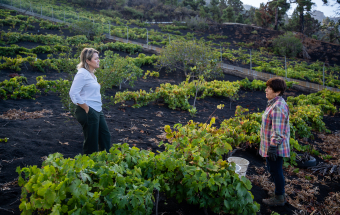 La consejera de Agricultura, Ganadería y Pesca del Gobierno de Canarias, Alicia Vanoostende, visitó en la mañana de hoy junto al director general de Agricultura, Augusto Hernández, y el presidente de Bodegas Tamanca, Federico Simón, la zona de viñedos de Las Manchas, en el municipio palmero de El Paso, para conocer cómo está siendo la primera vendimia tras la erupción volcánica y ahondar en los trabajos que se están llevando a cabo para mejorar las redes de riego y carreteras de acceso a viñedos en el sur de la isla.