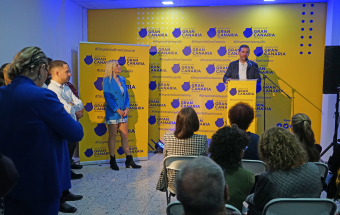 El acto contó, además, con la presencia de José Mari Ponce, candidato de la formación grancanaria a presidir el Cabildo, y de Lucas Bravo de Laguna, presidente insular del partido y cabeza de lista al Parlamento de Canarias.