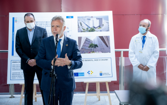 Las obras de la nueva torre, que supone una prioridad para el Ejecutivo regional, se corresponden a la fase II del proyecto de ampliación y reforma del Complejo Universitario Insular-Materno Infantil y se cofinancian, en un 85 por ciento, a través del Fondo Europeo de Desarrollo Regional (FEDER), dentro del objetivo político 4.5 del Programa Operativo Canarias 2021-2027.