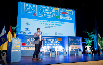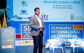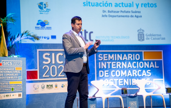 El jefe del Departamento de Agua del Instituto Tecnológico de Canarias (ITC), Baltasar Peñate, abrió la segunda sesión de la 16ª edición del Seminario Internacional de Comarcas Sostenibles que, organizadas por la Mancomunidad del Sureste, se ha celebrado estos días en Ingenio. En su presentación, el experto habló sobre la situación de la desalación de agua producida con energías renovables, y planteó cuáles son los retos que Canarias debe enfrentar para que “esa conversión del agua del mar pueda realizarse de forma exclusiva con renovables”.